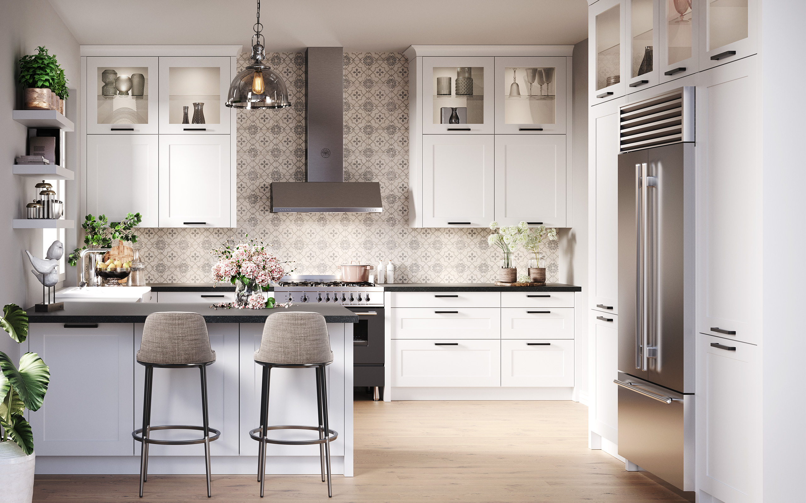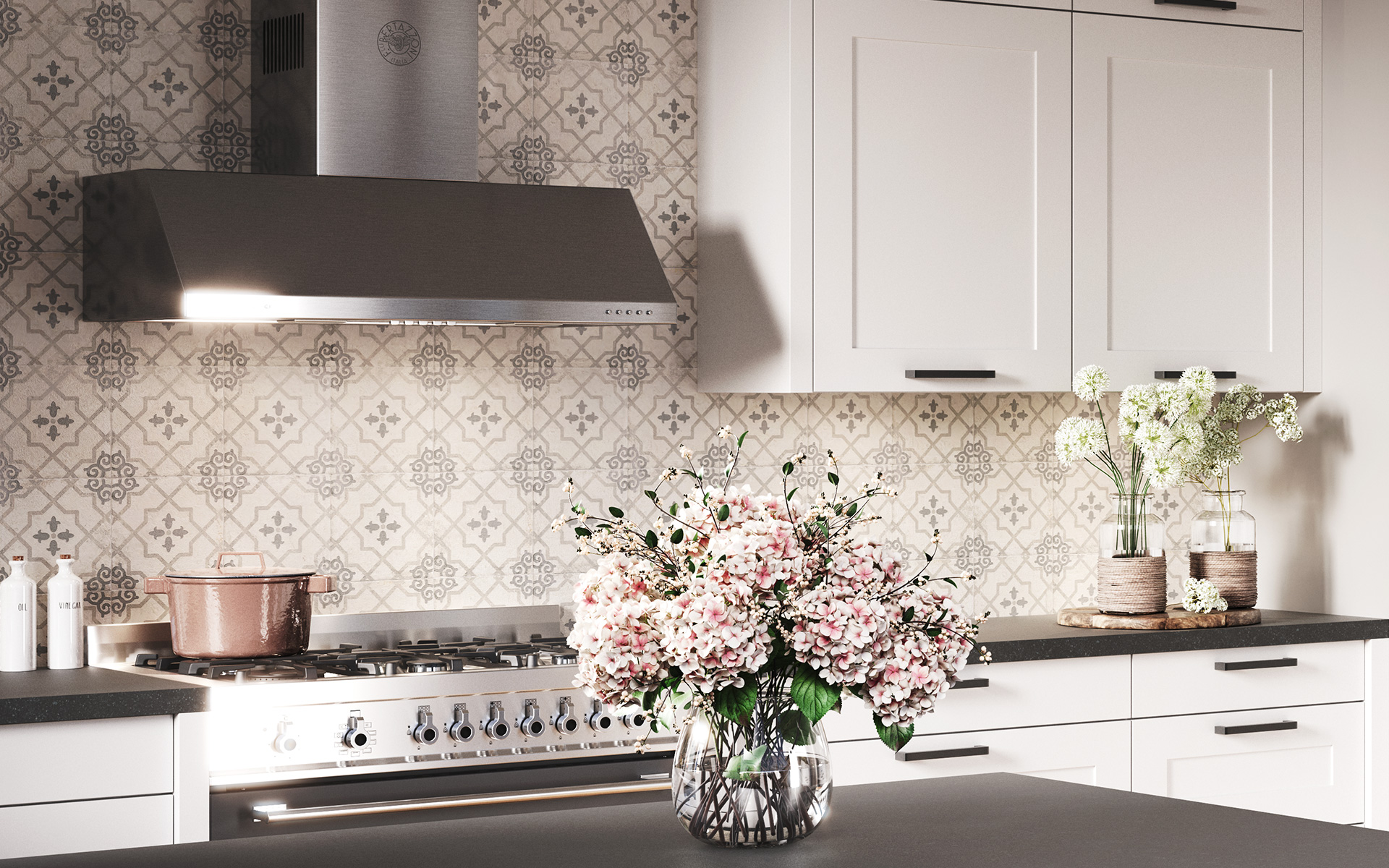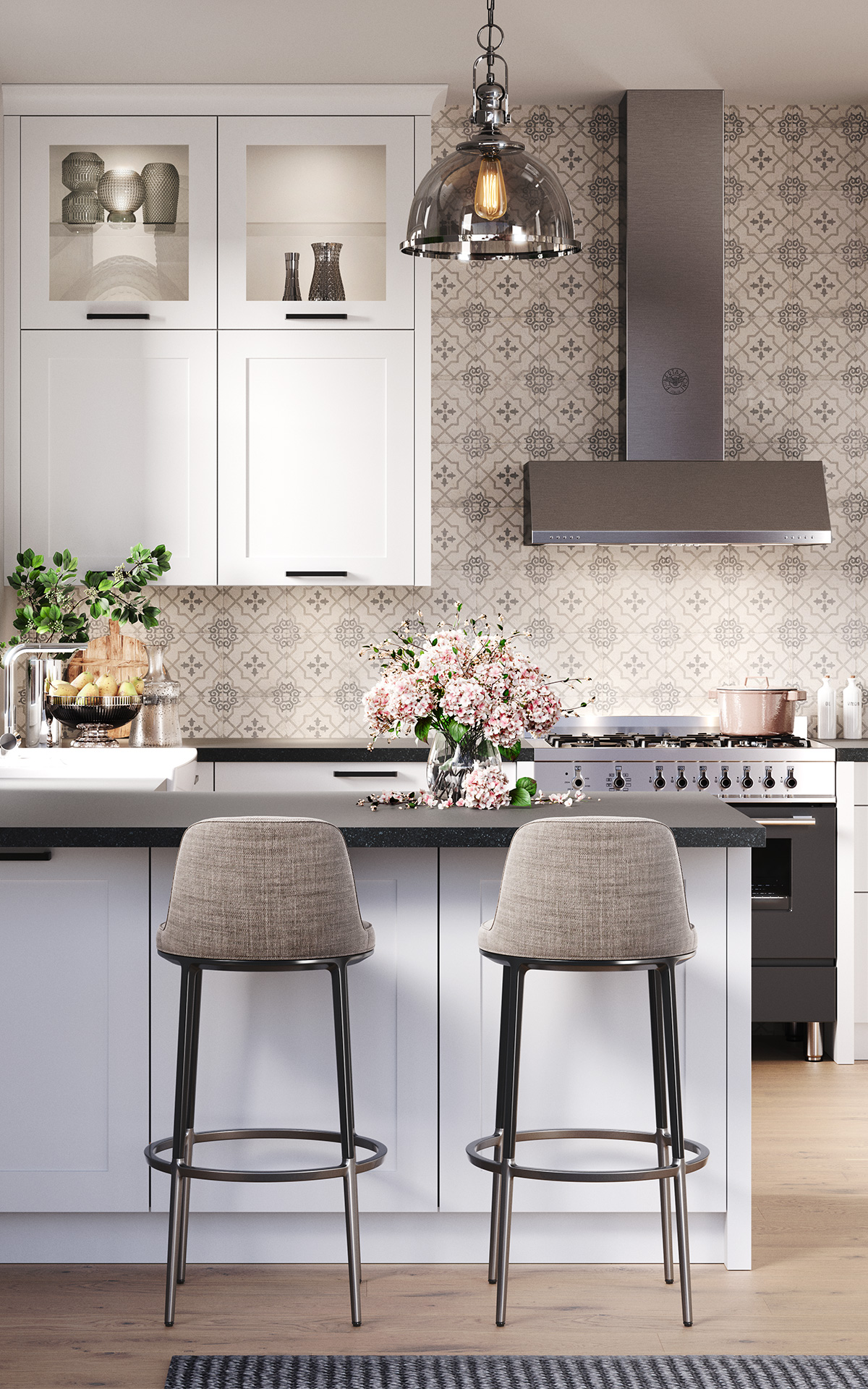 Энэхүү тохилог country хэв маягийн гал тогооны өрөөг харахад та шинэхэн жигнэмэгийн үнэрийг мэдрэх болно. Хамгийн сүүлийн үеийн интерьерүүдийг дэгжин хээтэй хаалгатай хослуулсан нь орчин үеийн хэв маягийн мөн чанар юм.